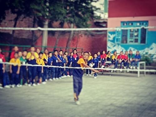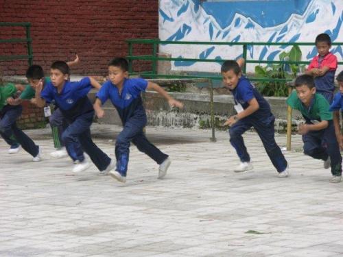 On the sports day, students are required to wear the dress prescribed by the white canvas shoes, white socks, white divided skirt or white shorts, house T-Shirt.